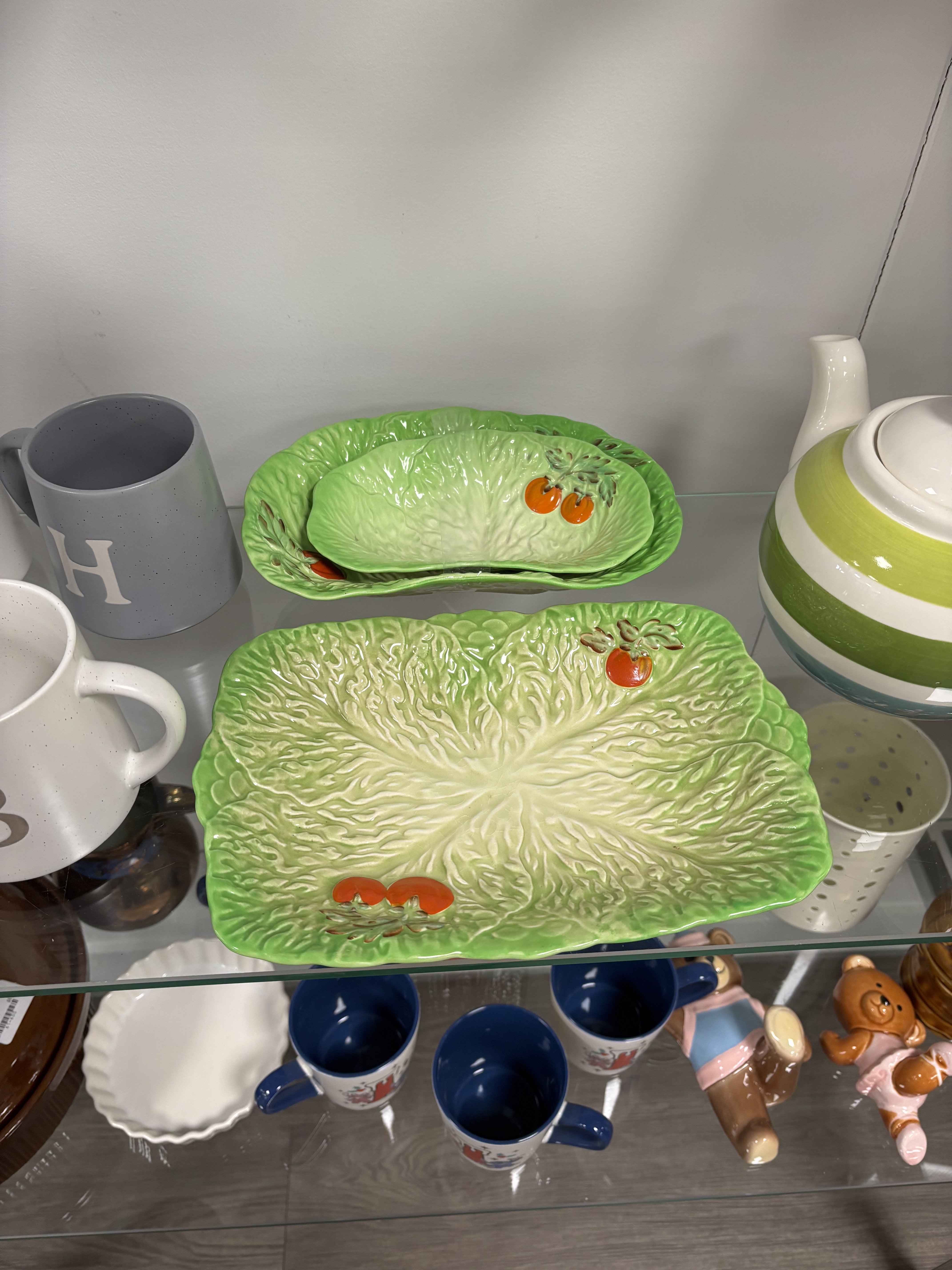 Two honourable mentions above: a very cute lettuce plate that I wanted but had no rhyme, reason or place to put it, and a beautifully detailed, carved table, which had sold within hours of being for sale according to a volunteer!